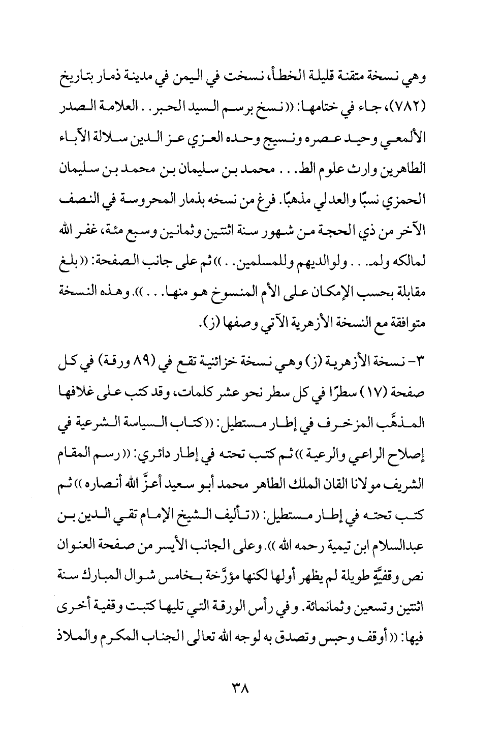 3 - نسخة الازهرية (ز) وهي نسخة خزائنية تقع في (89 ورقة) في كل