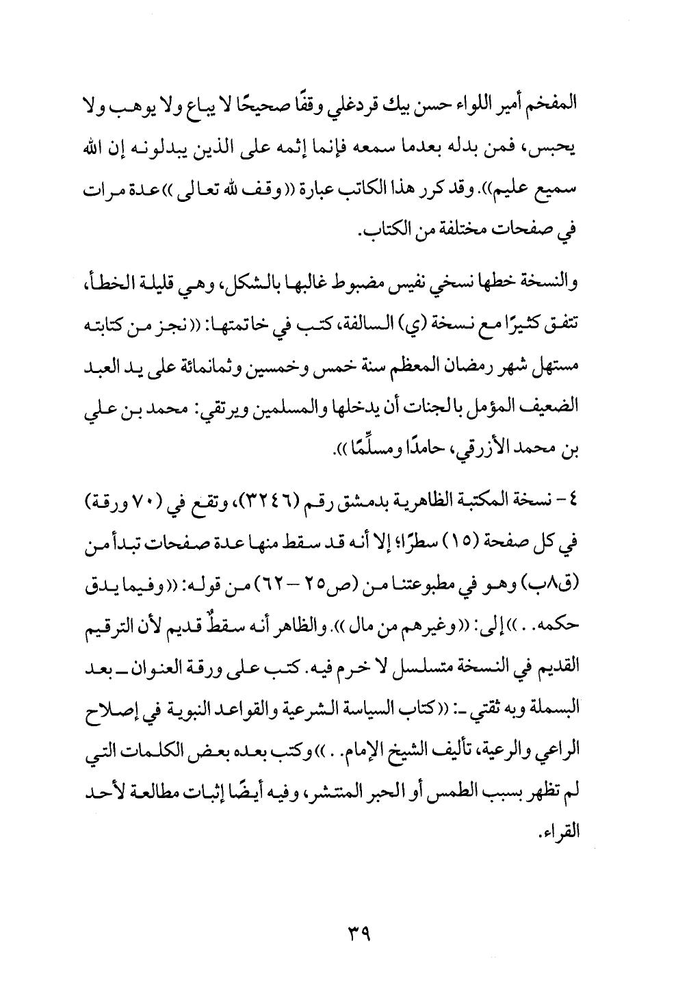 4 - نسخة المكتبة الظاهرية بدمشق رقم (46 32)، وتقع في (0 7 ورقة)