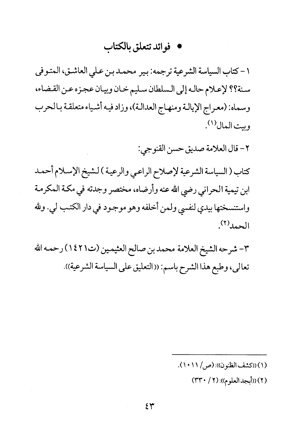 * فوائد تتعلق بالكتاب