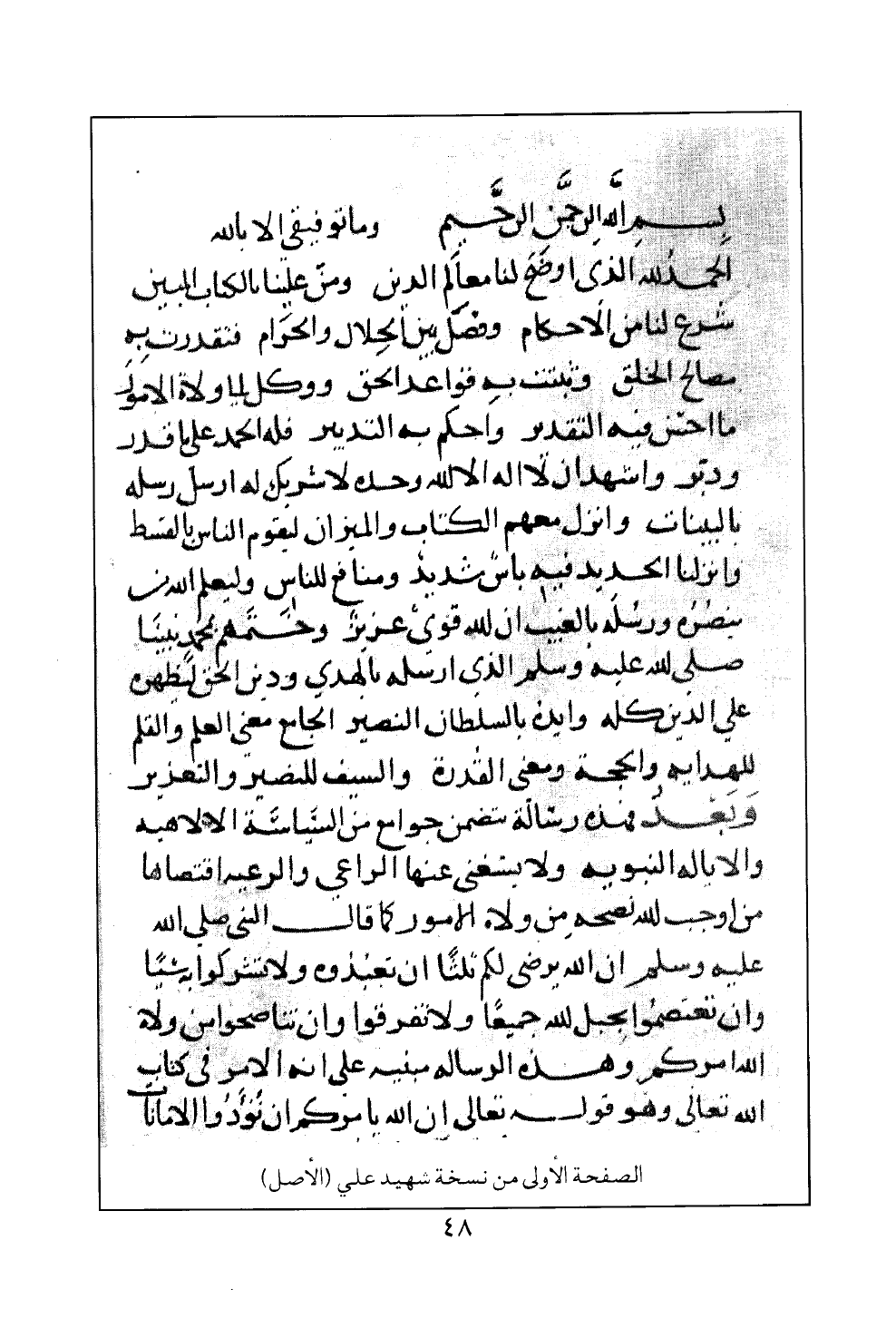 الصفحة الأولى من نسخة شهيد علي (الأصل)