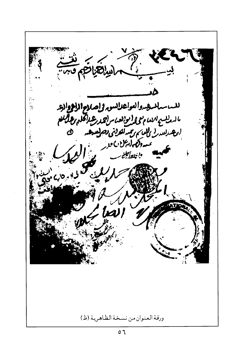 ورقة العنوان من نسخة الظاهرية (ظ)