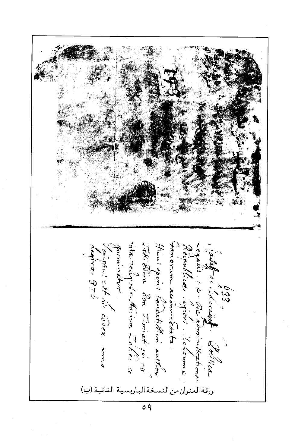 ورقة العنوان من النسخة الباريسية الثانية (ب)