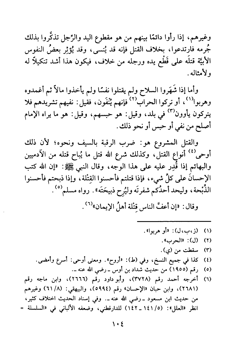 أوحى (4) أنواع القتل، وكذلك شرع الله قتل ما يباج قتله من الادميين