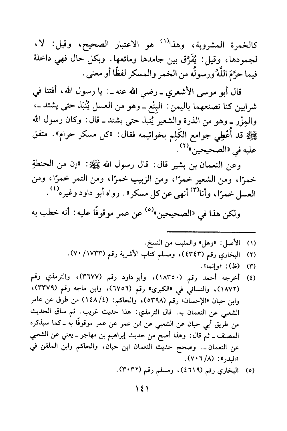العسل خمرا، و نا (3) أنهى عن كل مسكر". رواه أبو داود وغيره (4).