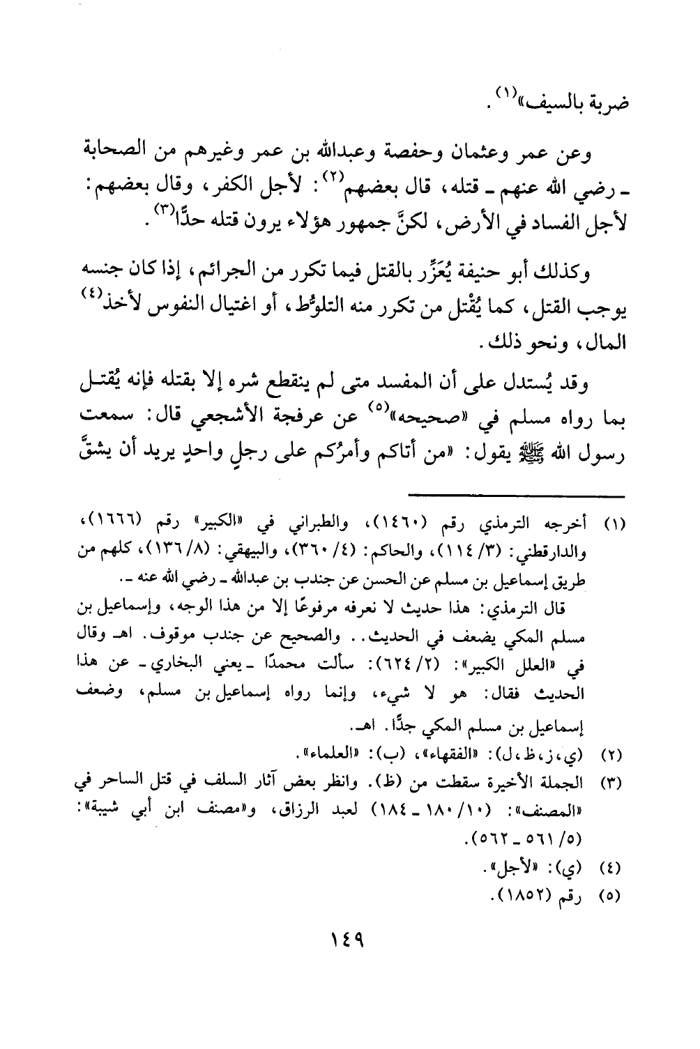 لاجل الفساد في الأرض، لكن جمهور هؤلاء يرون قتله حدا (3).