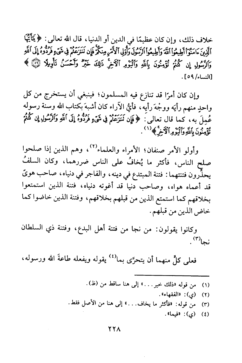 وأولو الامر صنفان؛ الأمراء والعلماء (2)، وهم الذين اذا صلحوا
