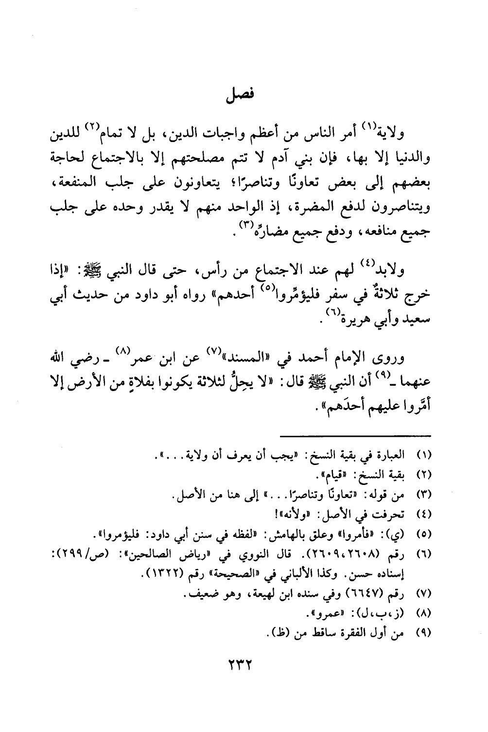 ولاية (1) أمر الناس من أعظم واجبات الدين، بل لا تمام (2) للدين