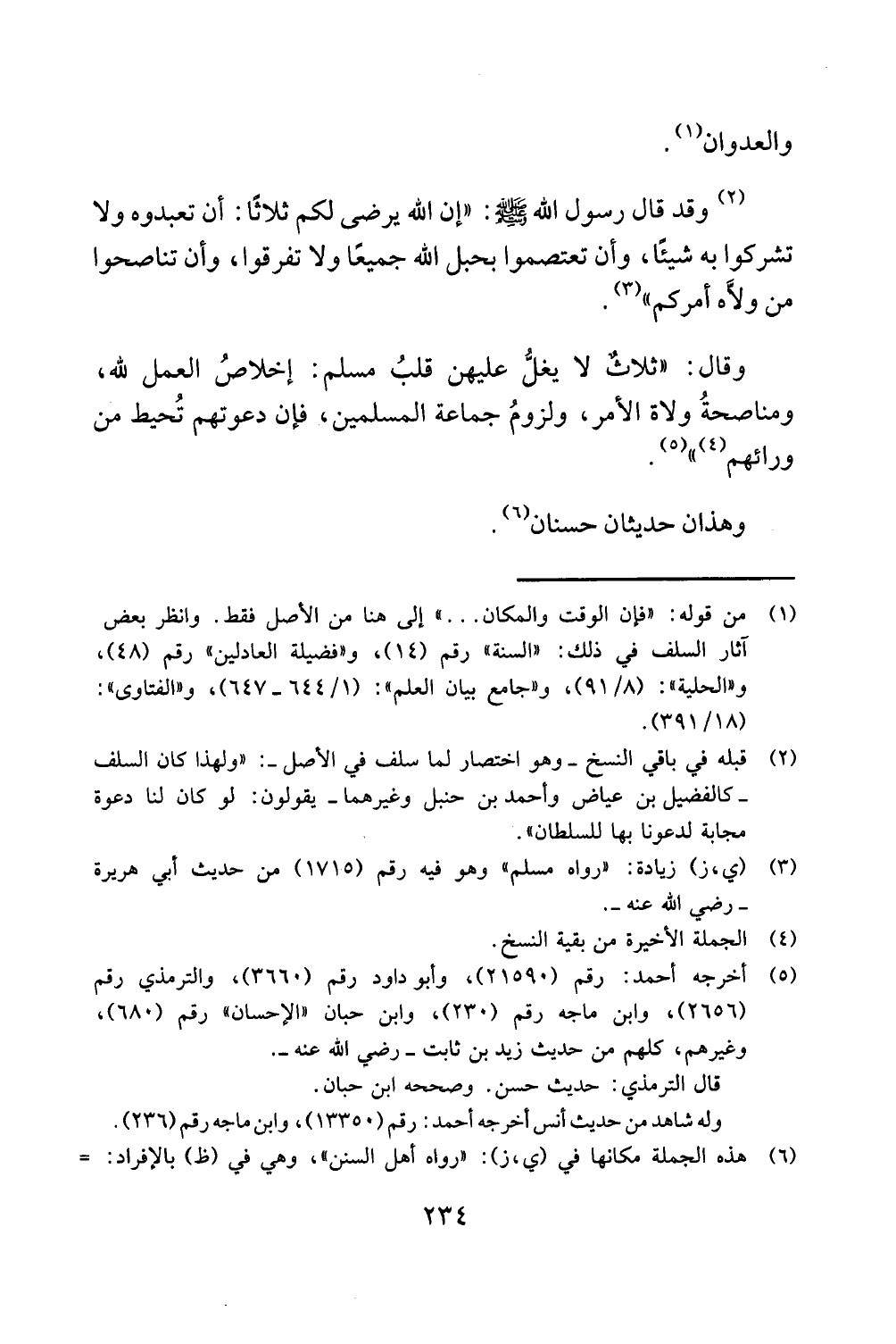 (2) وقد قال رسول الله ع!: " إن الله يرضى لكم ثلاثا: أن تعبدوه ولا