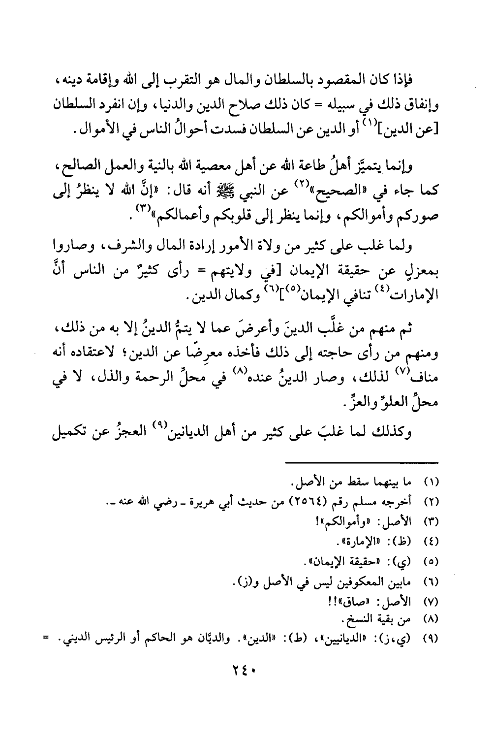 ولما غلب على كثير من ولاة الامور إرادة المال والشرف، وصاروا