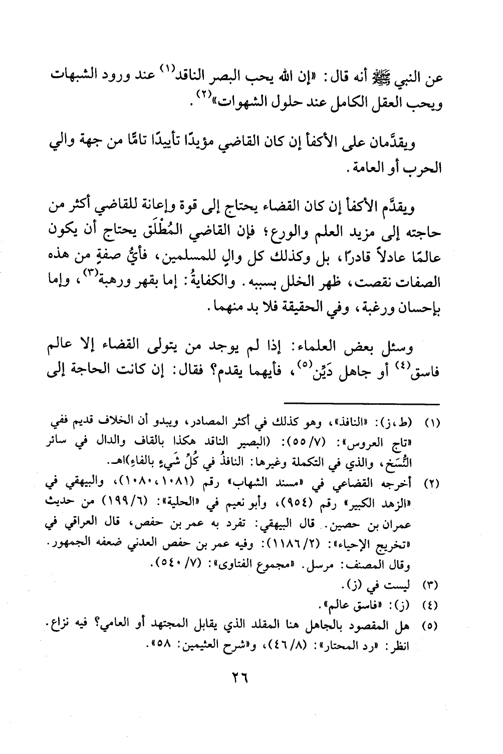 عالما عادلا قادرا، بل وكذلك كل وال للمسلمين، فأي صفة من هذه