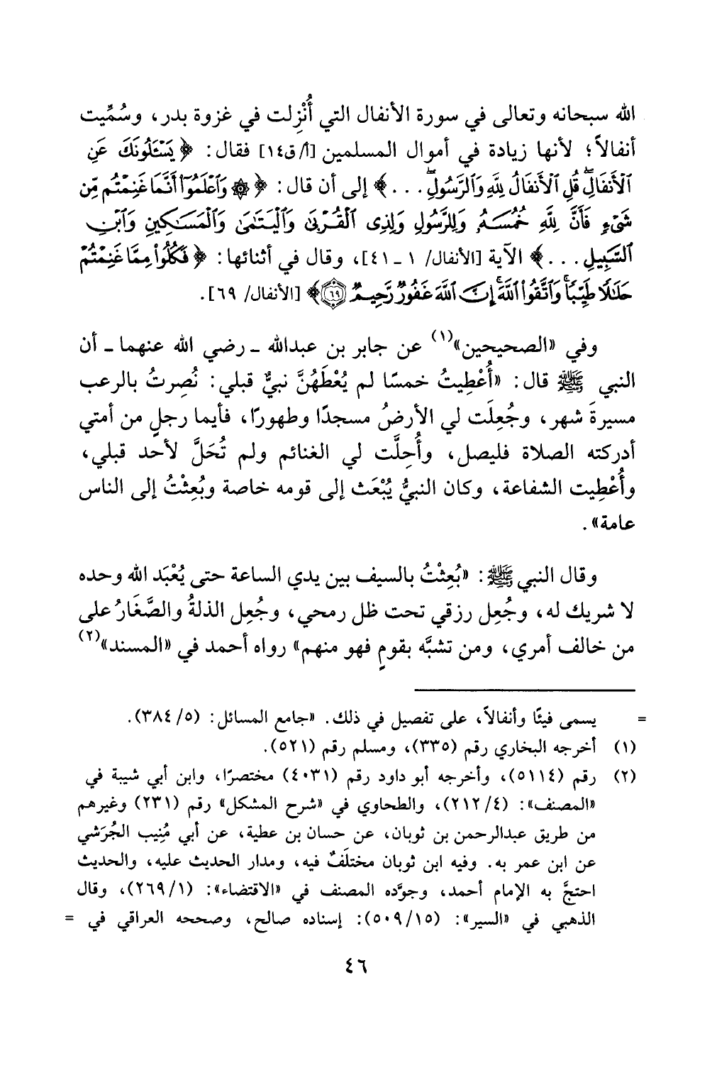 السبيل 0 0 0) الاية [الانفال/ 1 - 1 4]، وقال في أثنائها: < فكوا مئاغنضتم