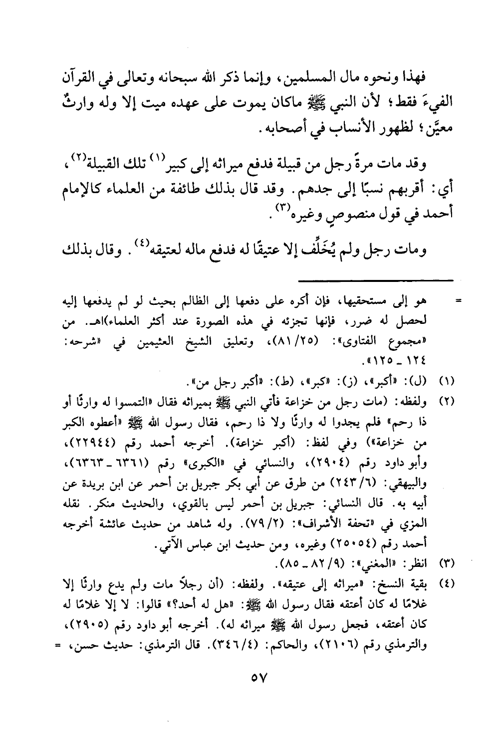 كان أعتقه، فجعل رسول الله ع! ه ميراثه له). أخرجه أبو داود رقم (2905)،