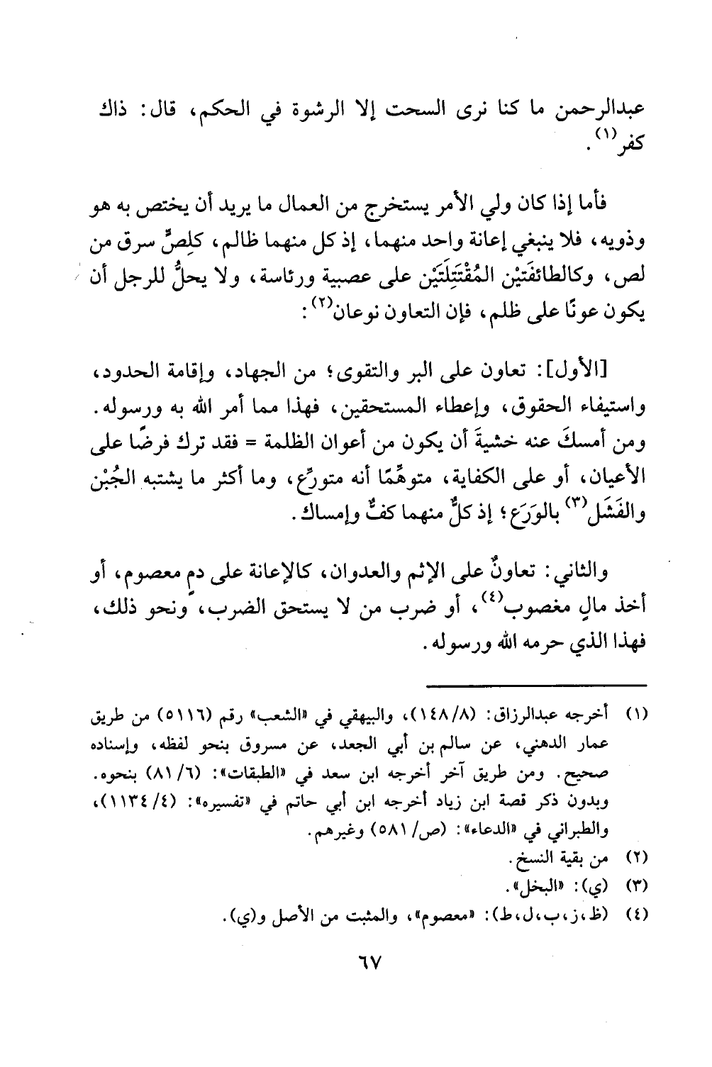 عبدالرحمن ما كنا نرى السحت إلا الرشوة في الحكم، قال: ذاك