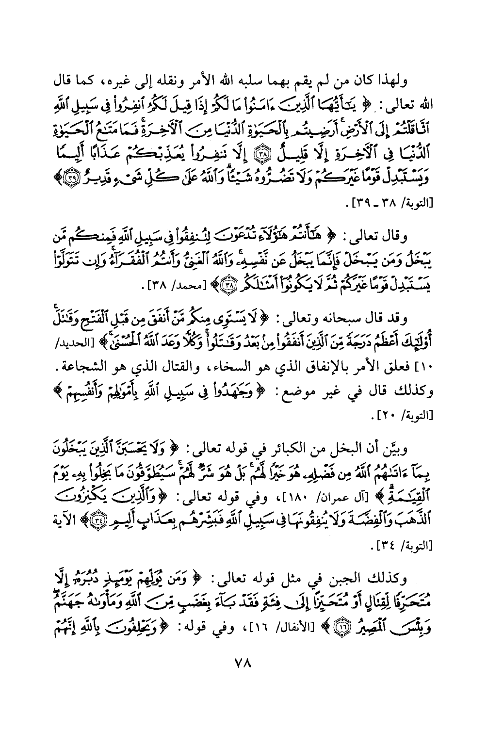 الله تعالى: " < يايها لذلرر ءامنوا ما لكؤ إذا قيل لكل نفروا في سييل ألله