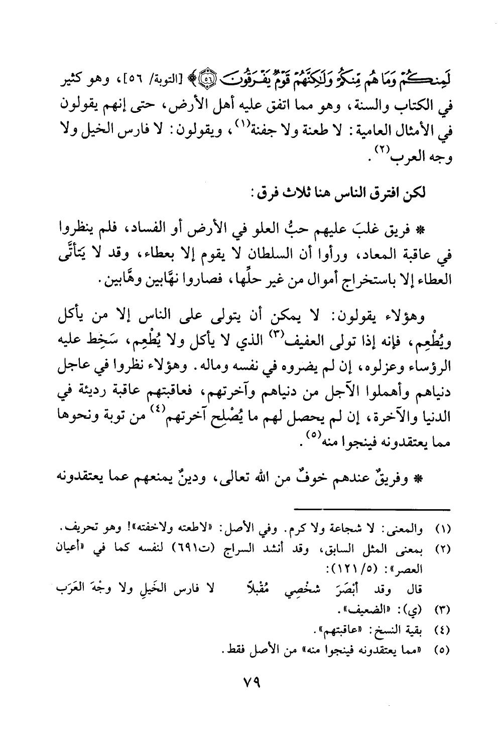 * وفريق عندهم خوف من الله تعالى، ودين يمنعهم عما يعتقدونه