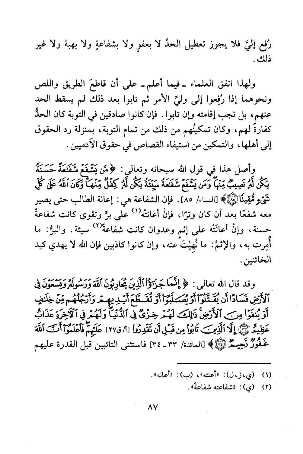 لثئي مميئا!) [النساء/ 85]. فان الشفاعة هي: إعانة الطالب حتى يصير