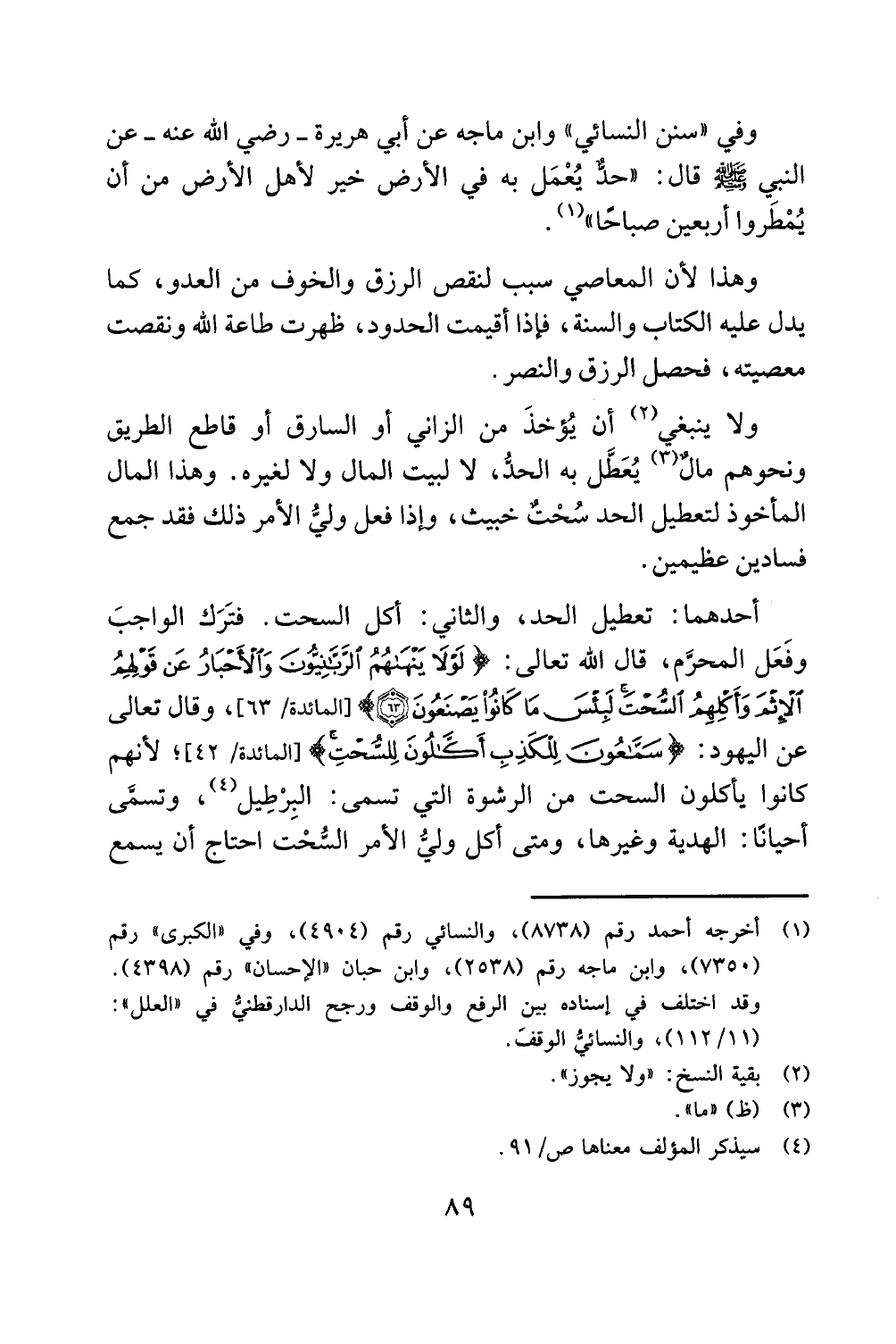 يدل عليه الكتاب و لسنة، فاذا أقيمت الحدود، ظهرت طاعة الله ونقصت