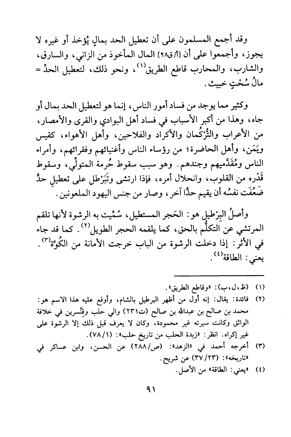 وكثير مما يوجد من فساد أمور الناس، إنما هو لتعطيل الحد بمال أو