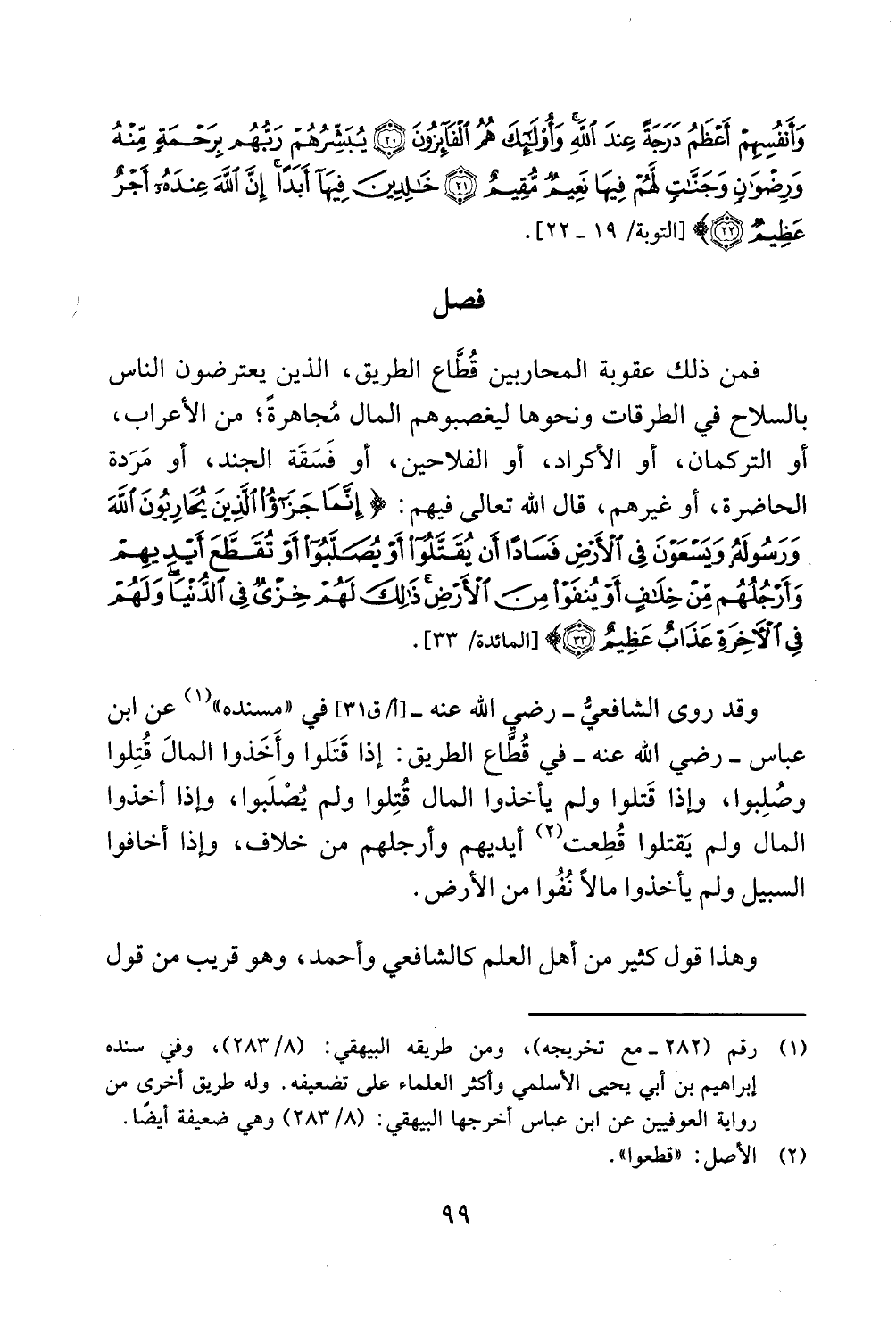 فمن ذلك عقوبة المحاربين قطاع الطريق، الذين يعترضون الناس
