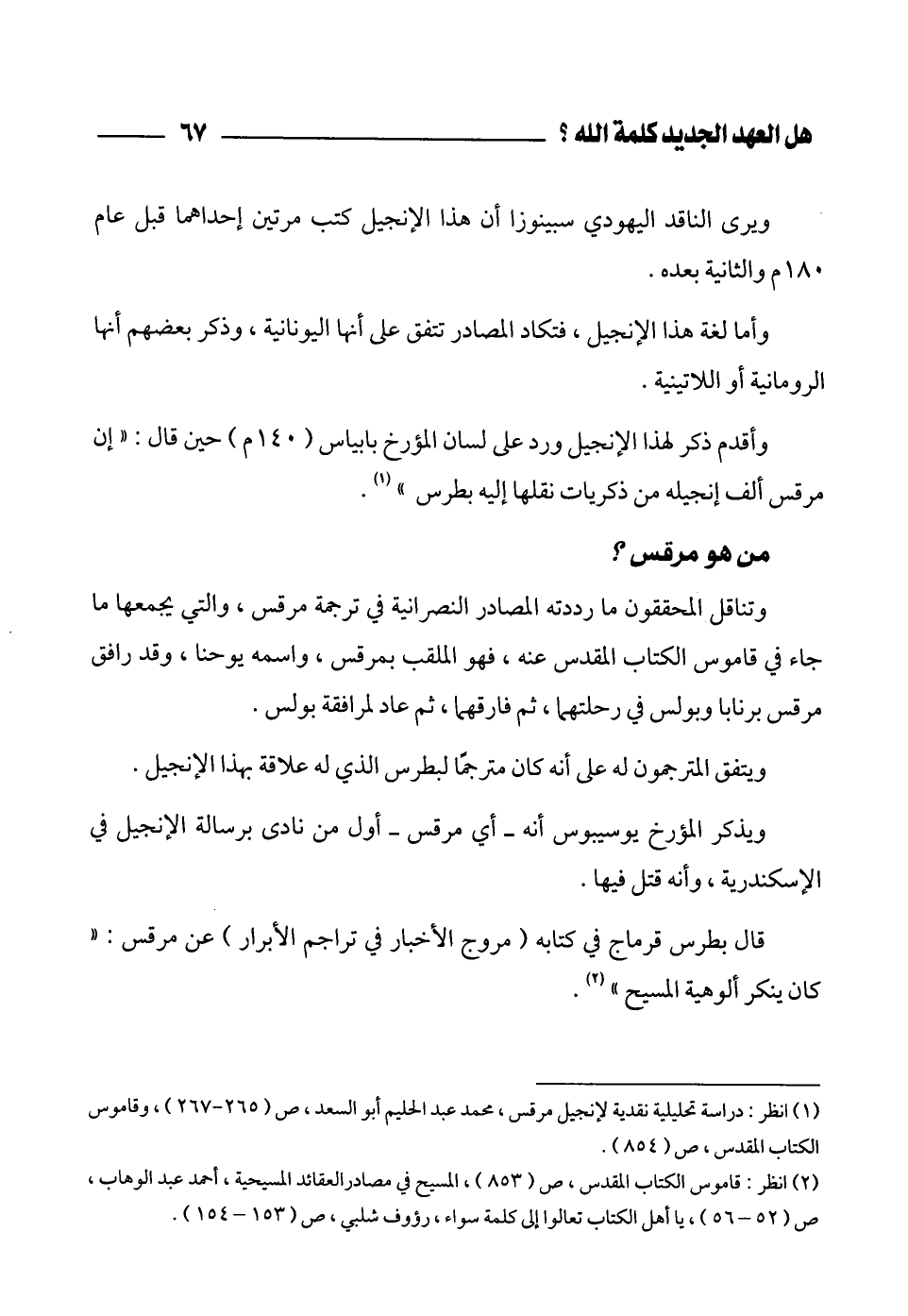 (¬1) انظر: دراسة تحليلية نقدية لإنجيل مرقس، محمد عبد الحليم أبو السعد، ص (265 - 267)، وقاموس الكتاب المقدس، ص (854).