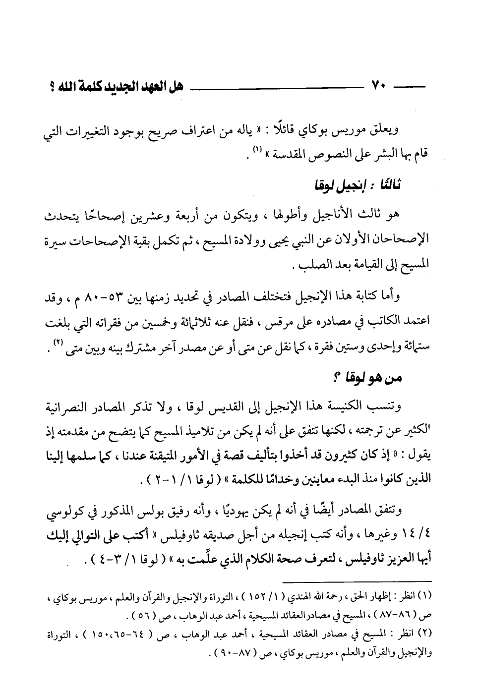 (¬1) انظر: إظهار الحق، رحمة الله الهندي (1/ 152)، التوراة والإنجيل والقرآن والعلم، موريس بوكاي، ص (86 - 87)، المسيح في مصادرالعقائد المسيحية، أحمد عبد الوهاب، ص (56).
