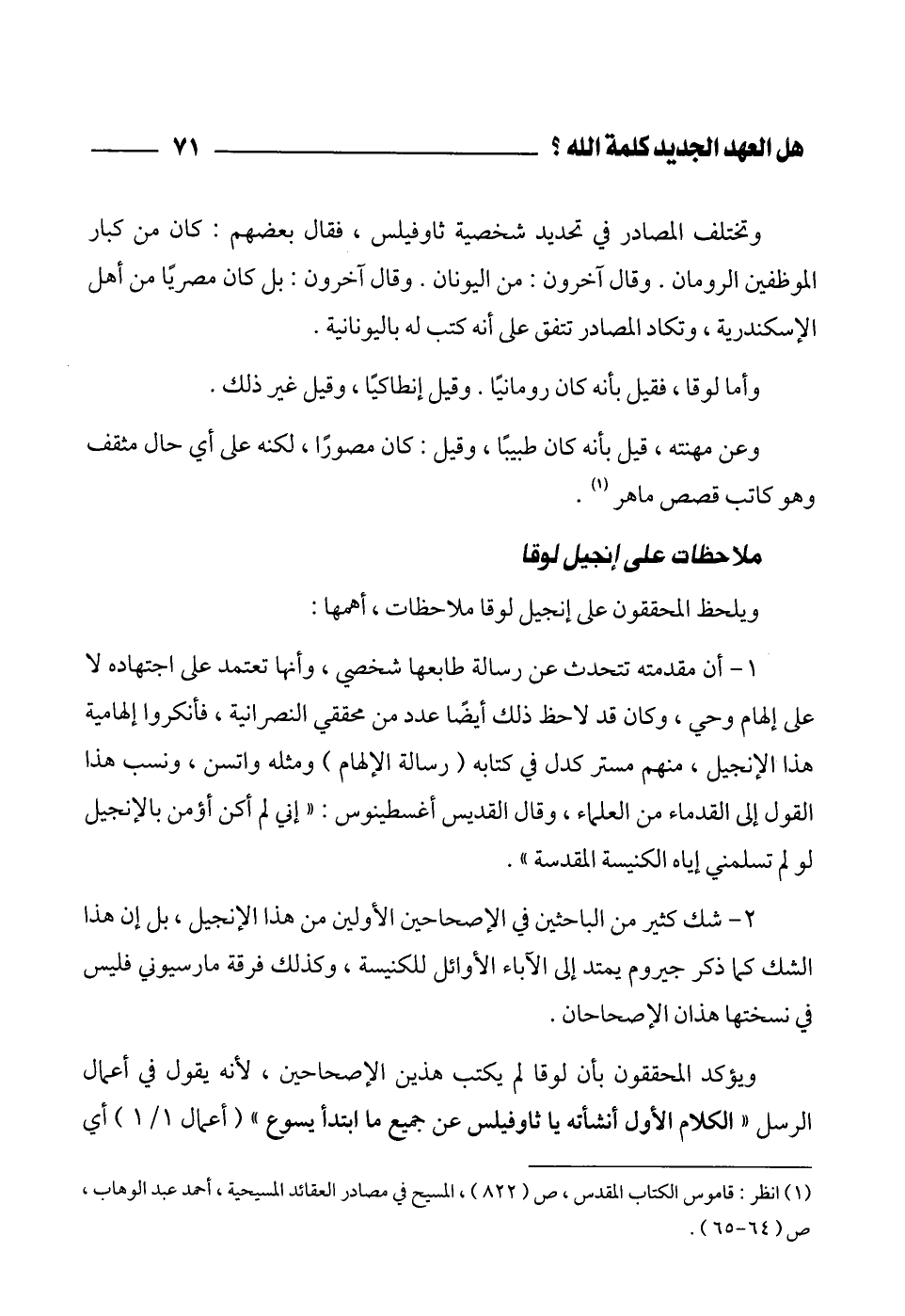 (¬1) انظر: قاموس الكتاب المقدس، ص (822)، المسيح في مصادر العقائد المسيحية، أحمد عبد الوهاب، ص (64 - 65).