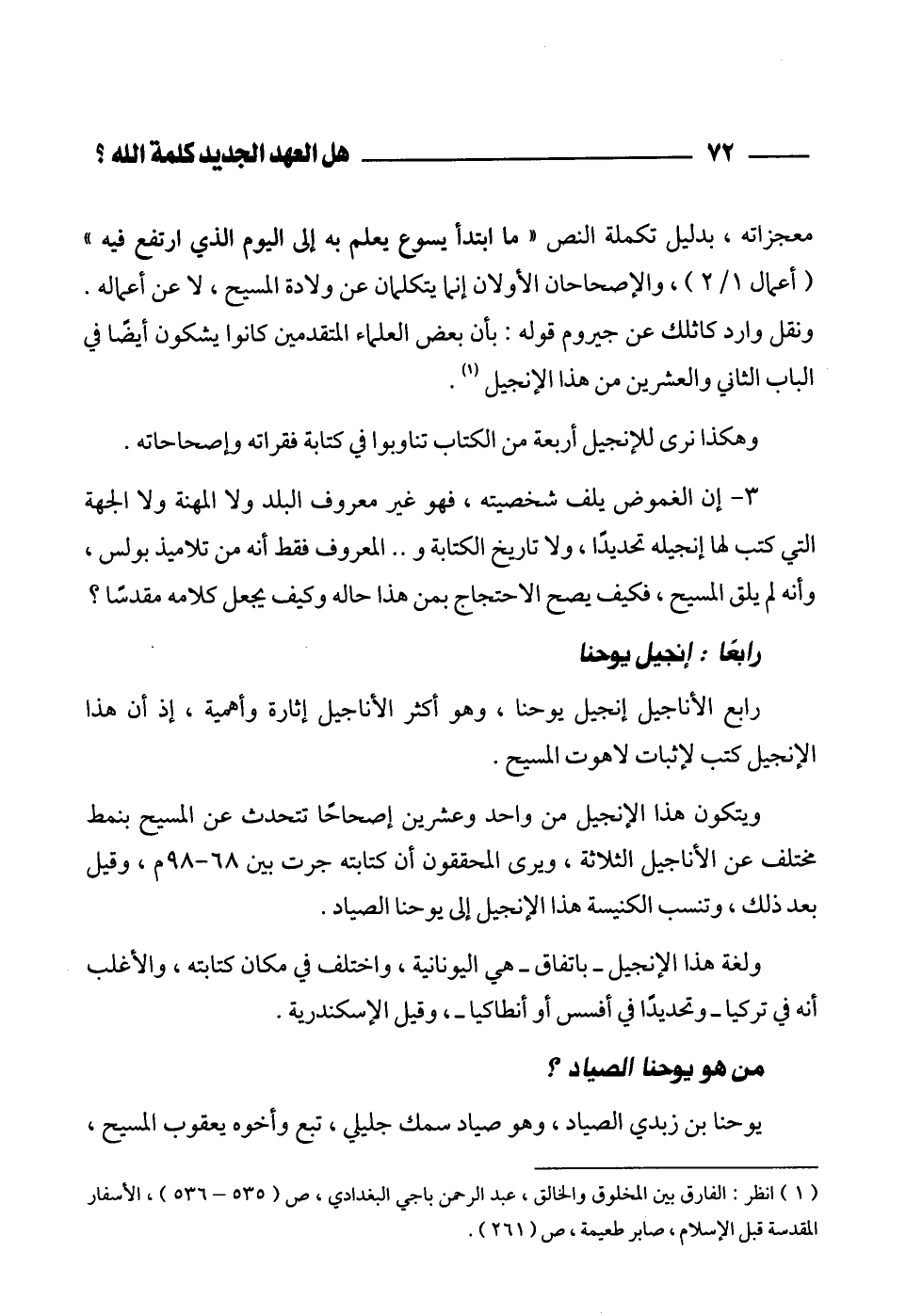 (¬1) انظر: الفارق بين المخلوق والخالق، عبد الرحمن باجي البغدادي، ص (535 - 536)، الأسفار المقدسة قبل الإسلام، صابر طعيمة، ص (261).