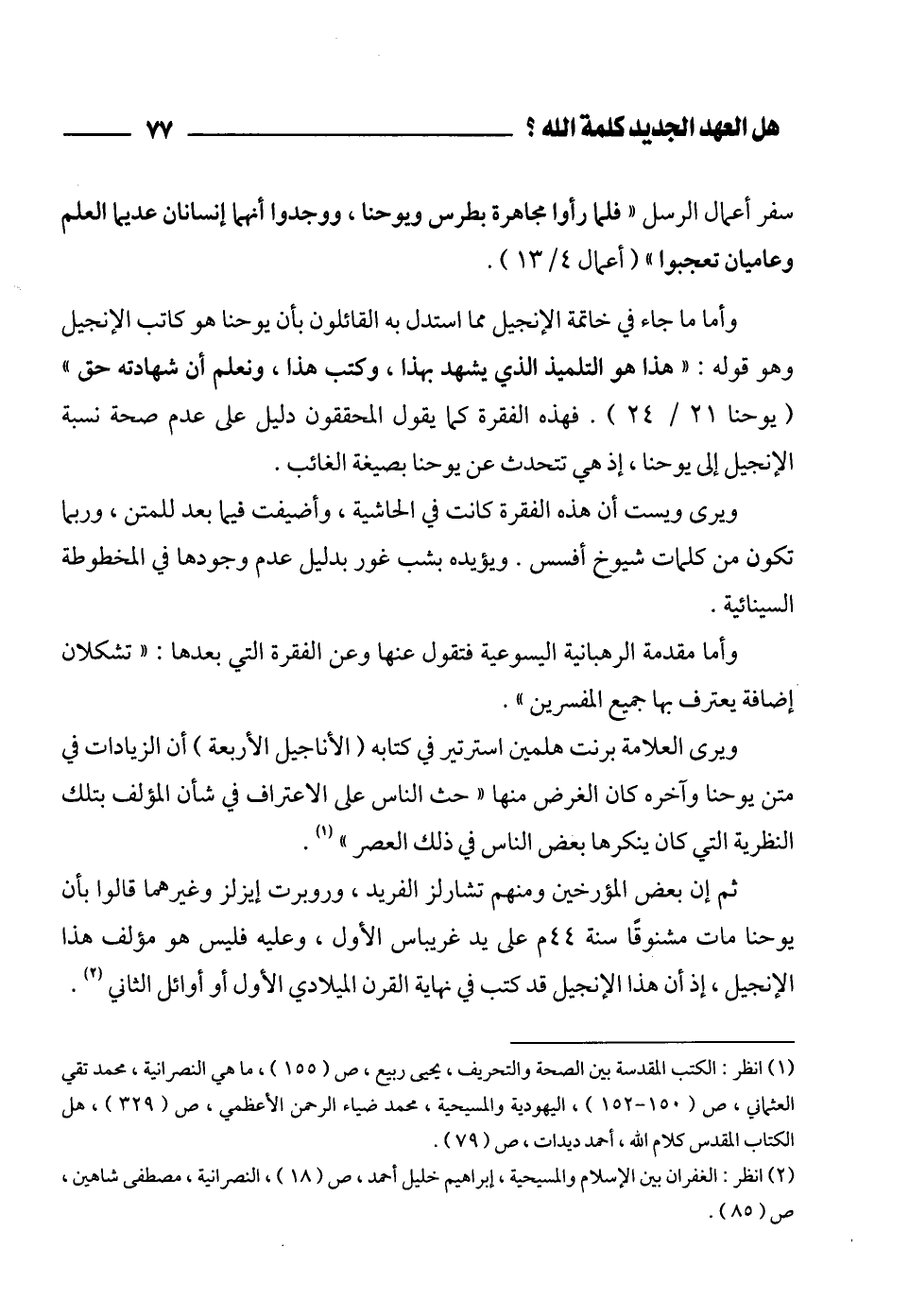 (¬1) انظر: الكتب المقدسة بين الصحة والتحريف، يحيى ربيع، ص (155)، ما هي النصرانية، محمد تقي العثماني، ص (150 - 152)، اليهودية والمسيحية، محمد ضياء الرحمن الأعظمي، ص (329)، هل الكتاب المقدس كلام الله، أحمد ديدات، ص (79).