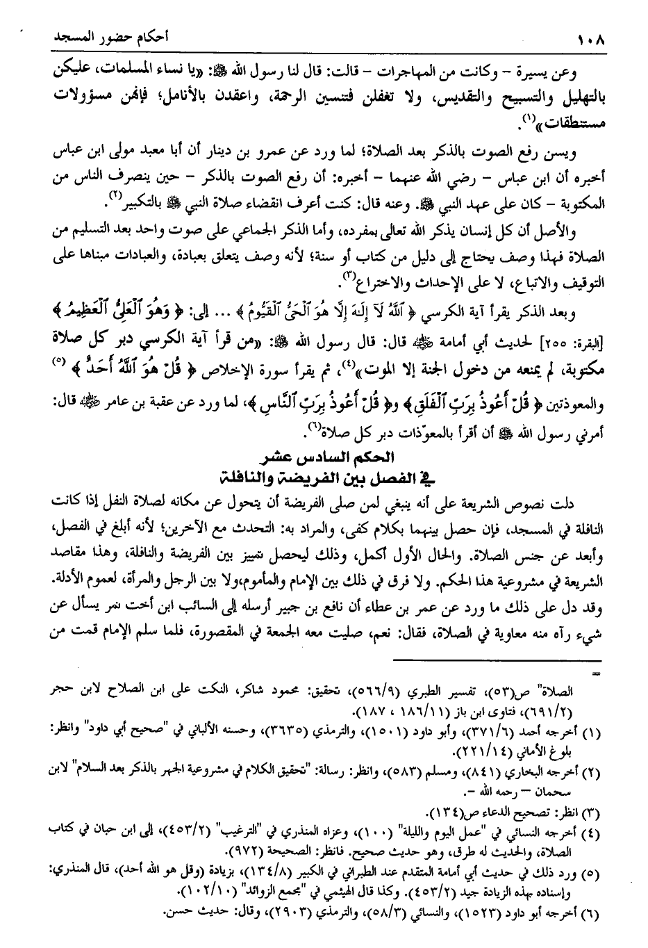 الحكم السادس عشر في الفصل بين الفريضة والنافلة