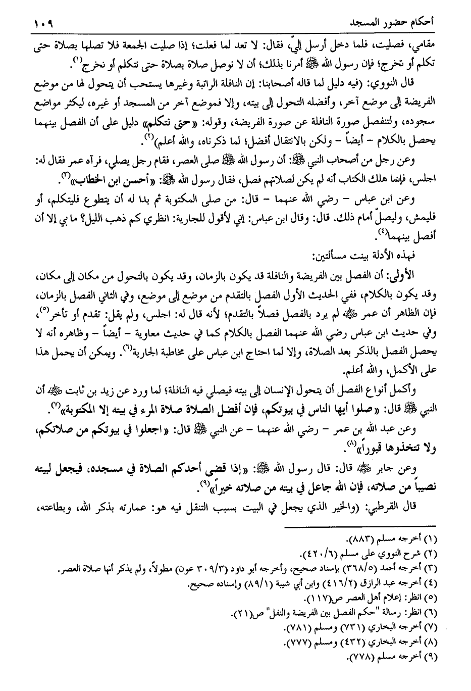 (¬6) انظر: رسالة "حكم الفصل بين الفريضة والنفل" ص (21).