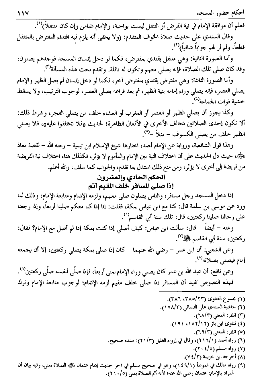 الحكم الحادي والعشرون إذا صلى المسافر خلف المقيم أتم