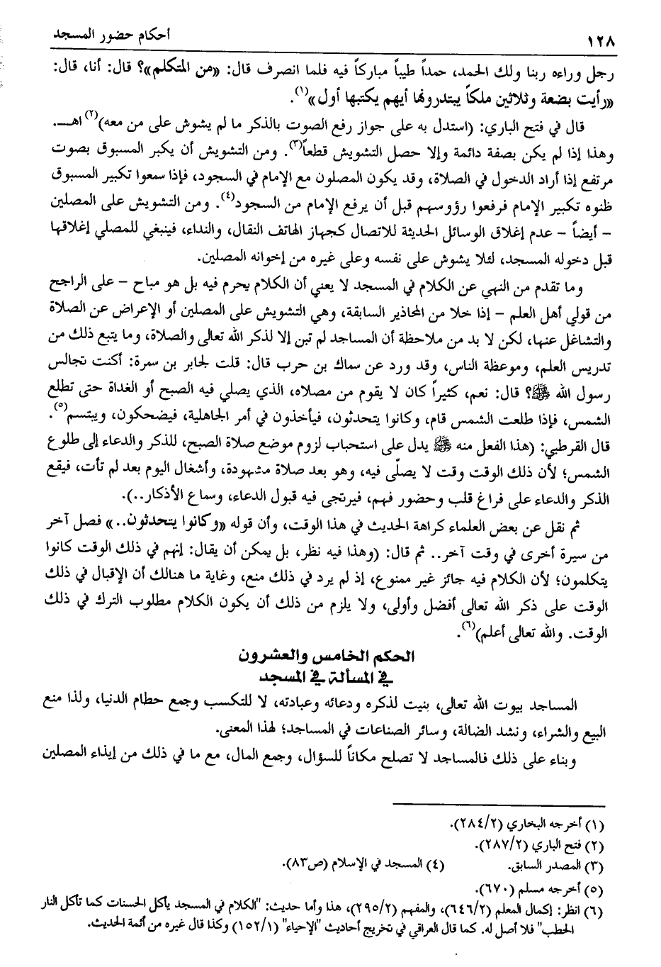 الحكم الخامس والعشرون في المسألة في المسجد