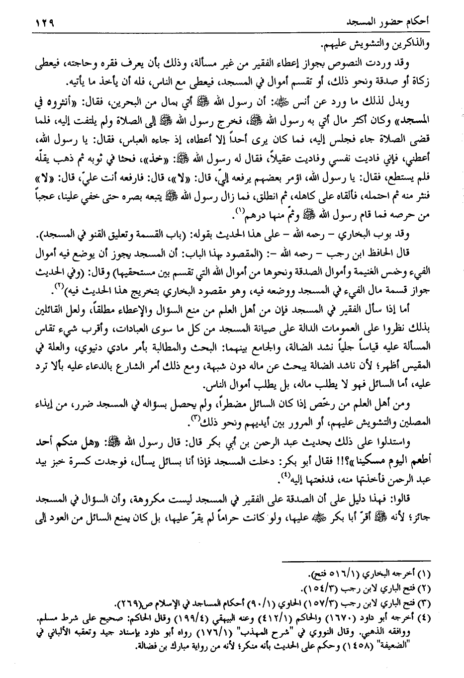 (¬3) فتح الباري لابن رجب (3/ 157) الحاوي (1/ 90) أحكام المساجد في الإسلام ص (269).