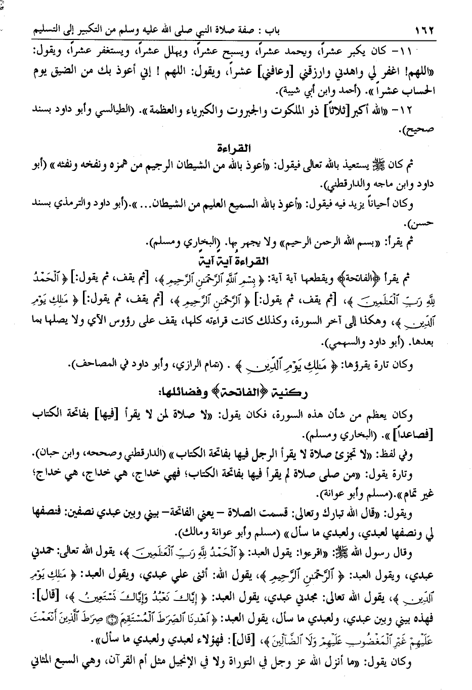 وقال رسول الله صَلَّى اللَّهُ عَلَيْهِ وَسَلَّمَ: (اقرؤوا: يقول العبد: الحمد لله رب العالمين، يقول الله تعالى: حمدني عبدي، ويقول العبد: الرحمن الرحيم، يقول الله: أثنى علي عبدي، ويقول العبد: مالك يوم الدين، يقول الله تعالى: مجدني عبدي، يقول العبد: إياك نعبد وإياك نستعين، [قال]: فهذه بيني وبين عبدي، ولعبدي ما سأل، يقول العبد: اهدنا الصراط المستقيم صراط الذين أنعمت عليهم غير المغضوب عليهم ولا الضالين، [قال]: فهؤلاء لعبدي ولعبدي ما سأل).