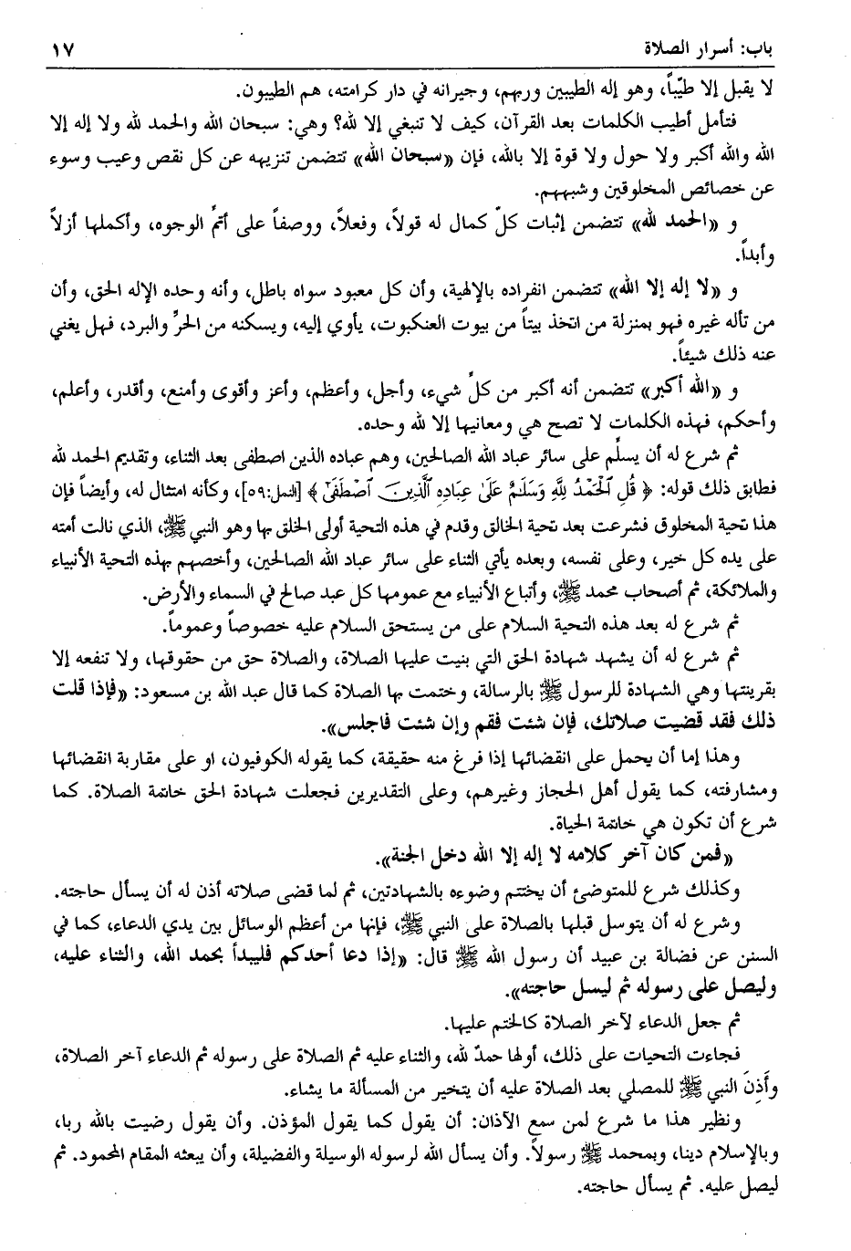 وهذا إما أن يحمل على انقضائها إذا فرغ منه حقيقة، كما يقوله الكوفيون، أو على مقاربة انقضائها ومشارفته، كما يقول أهل الحجاز وغيرهم، وعلى التقديرين فجعلت شهادة الحق خاتمة الصلاة. كما شرع أن تكون هي خاتمة الحياة.