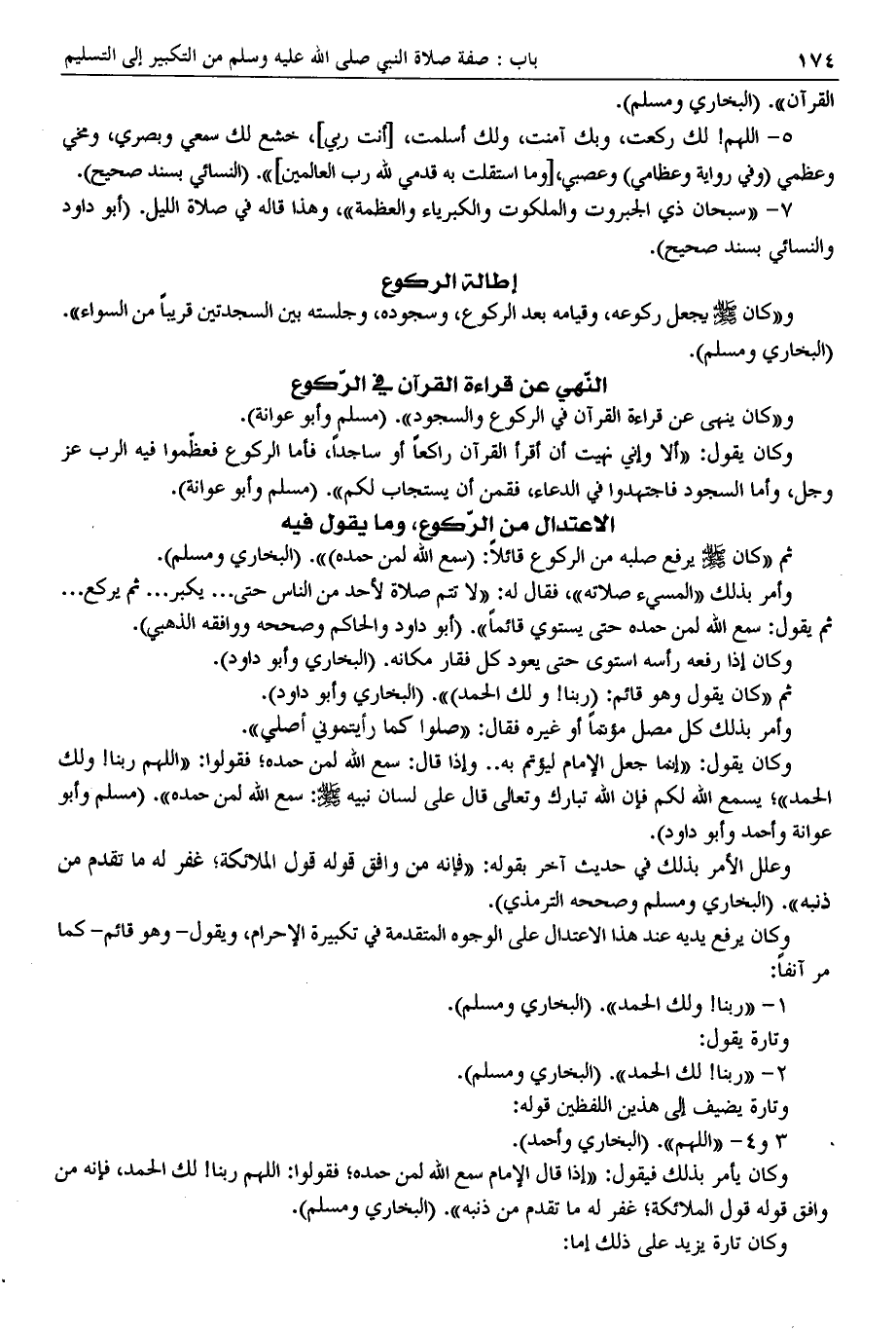 وكان إذا رفع رأسه استوى حتى يعود كل فقار مكانه. (البخاري وأبو داود).