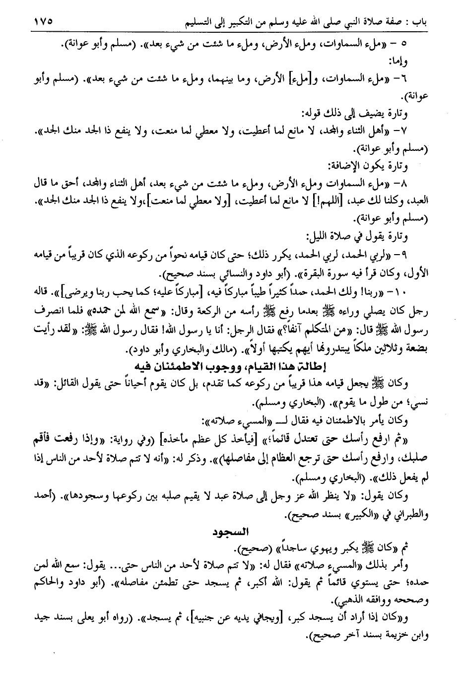 9 - (لربي الحمد، لربي الحمد) يكرر ذلك؛ حتى كان قيامه نحوًا من ركوعه الذي كان قريبًا من قيامه الأول وكان قرأ فيه سورة البقرة). (أبو داود والنسائي بسند صحيح).