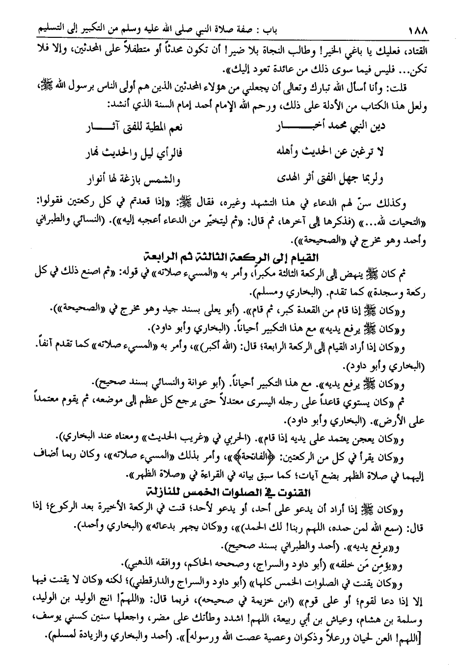 ثم كان صَلَّى اللَّهُ عَلَيْهِ وَسَلَّمَ ينهض إلى الركعة الثالثة مكبرًا وأمر به (المسيء صلاته) في قوله: (ثم اصنع ذلك في كل ركعة وسجدة) كما تقدم. (البخاري ومسلم).
