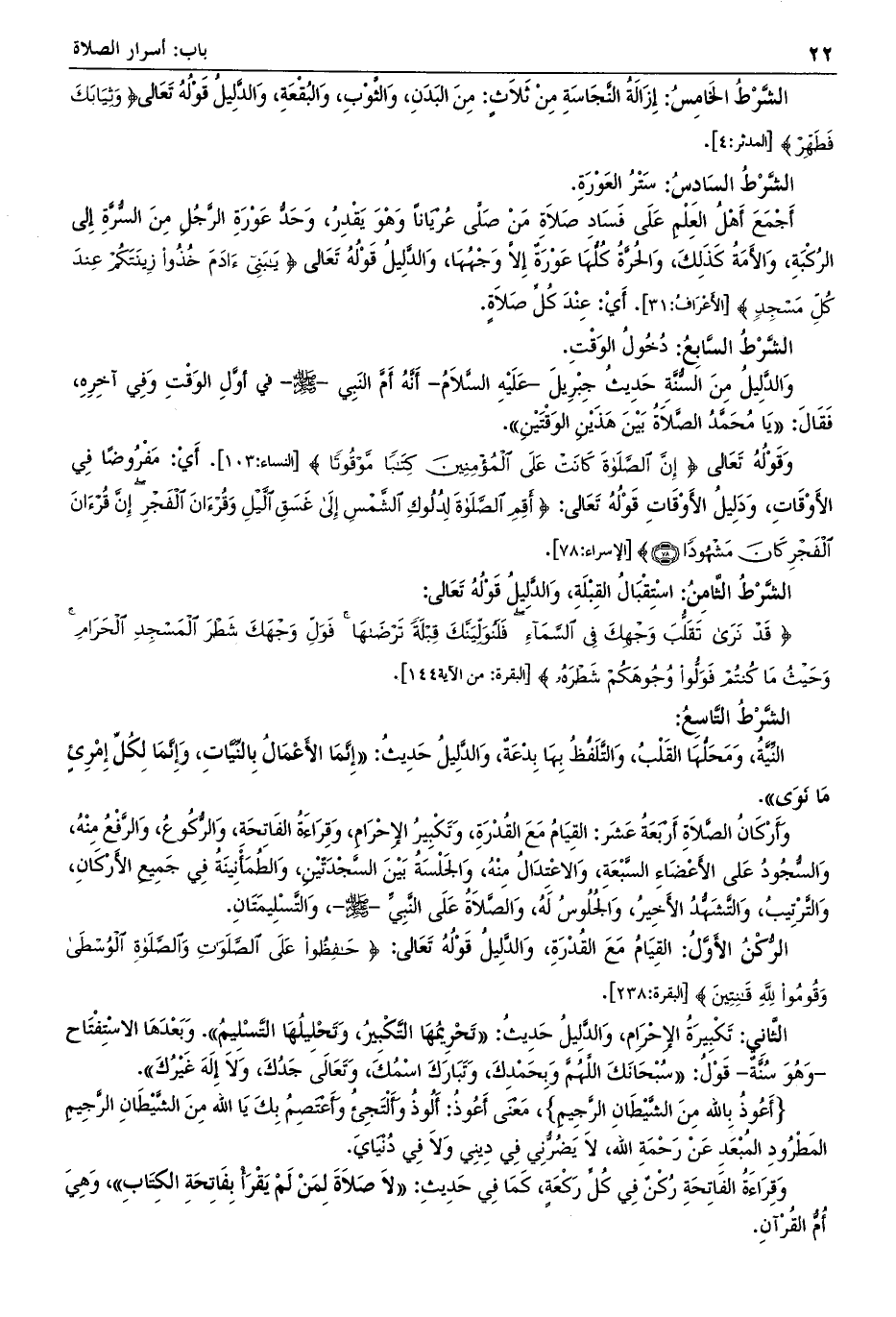 الشرط الخامس. إزالة النجاسة من ثلاث: من البدن، والثوب، والبقعة، والدليل قوله تعالى: {وَثِيَابَكَ فَطَهِّرْ} [المدثر: 4].