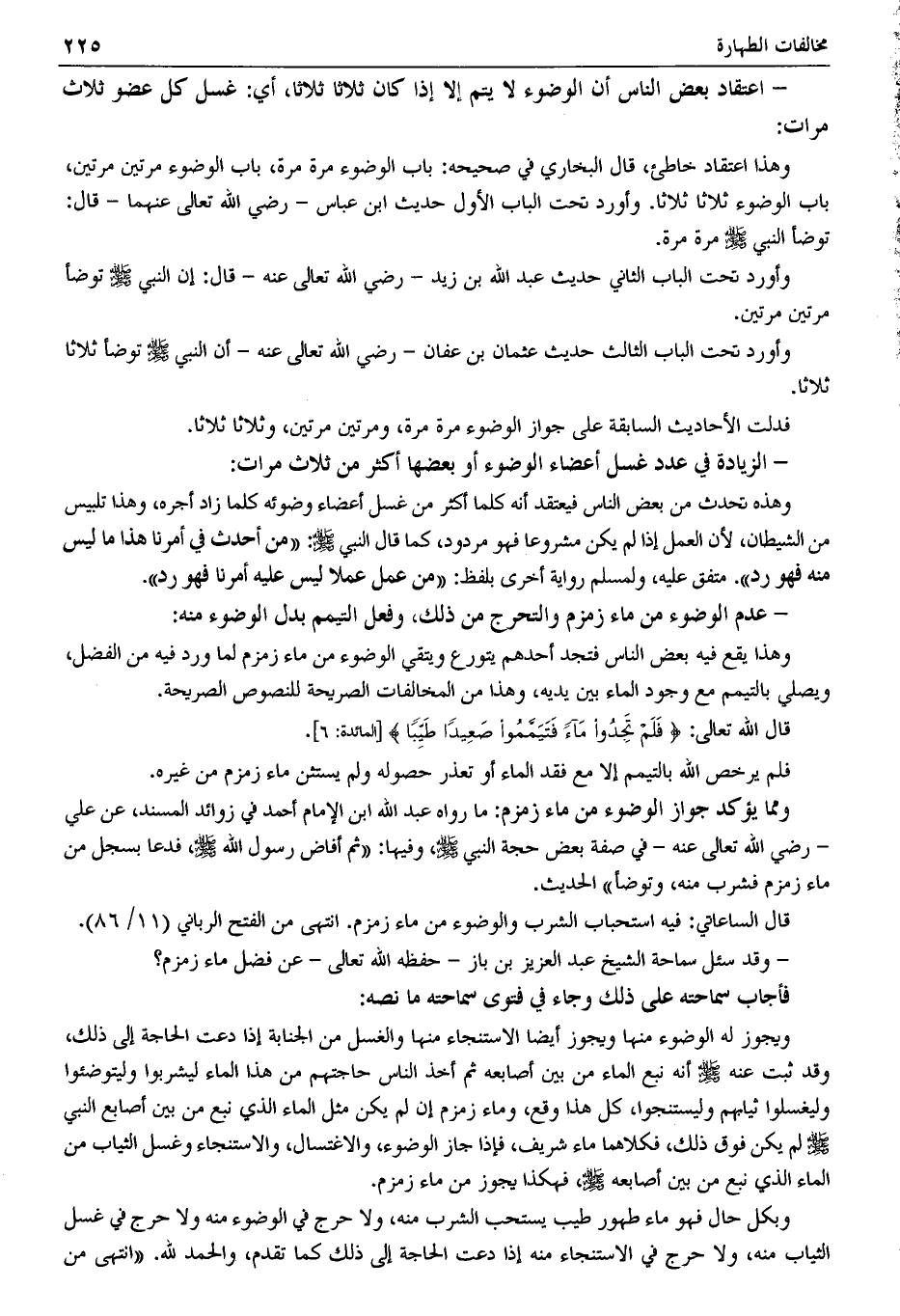 - اعقاد بعض الناس أن الوضوء لا يتم ألا إذا كان ثلاثًا ثلاثًا، أي: غسل كل عضو ثلاث مرات: