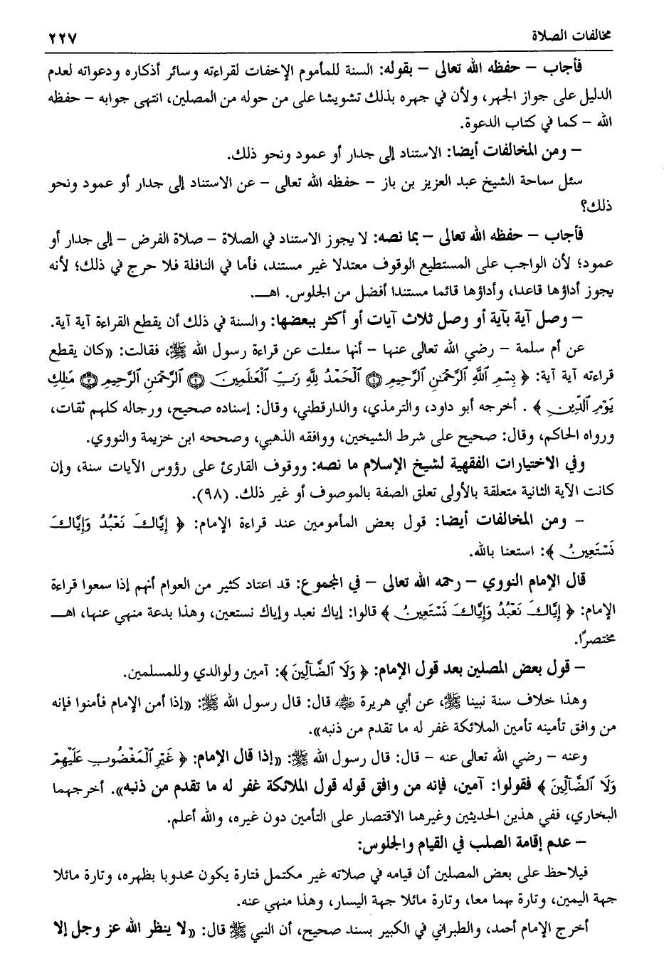 - ومن المخالفات أيضًا: الاستناد إلى جدار أو عمود ونحو ذلك.
