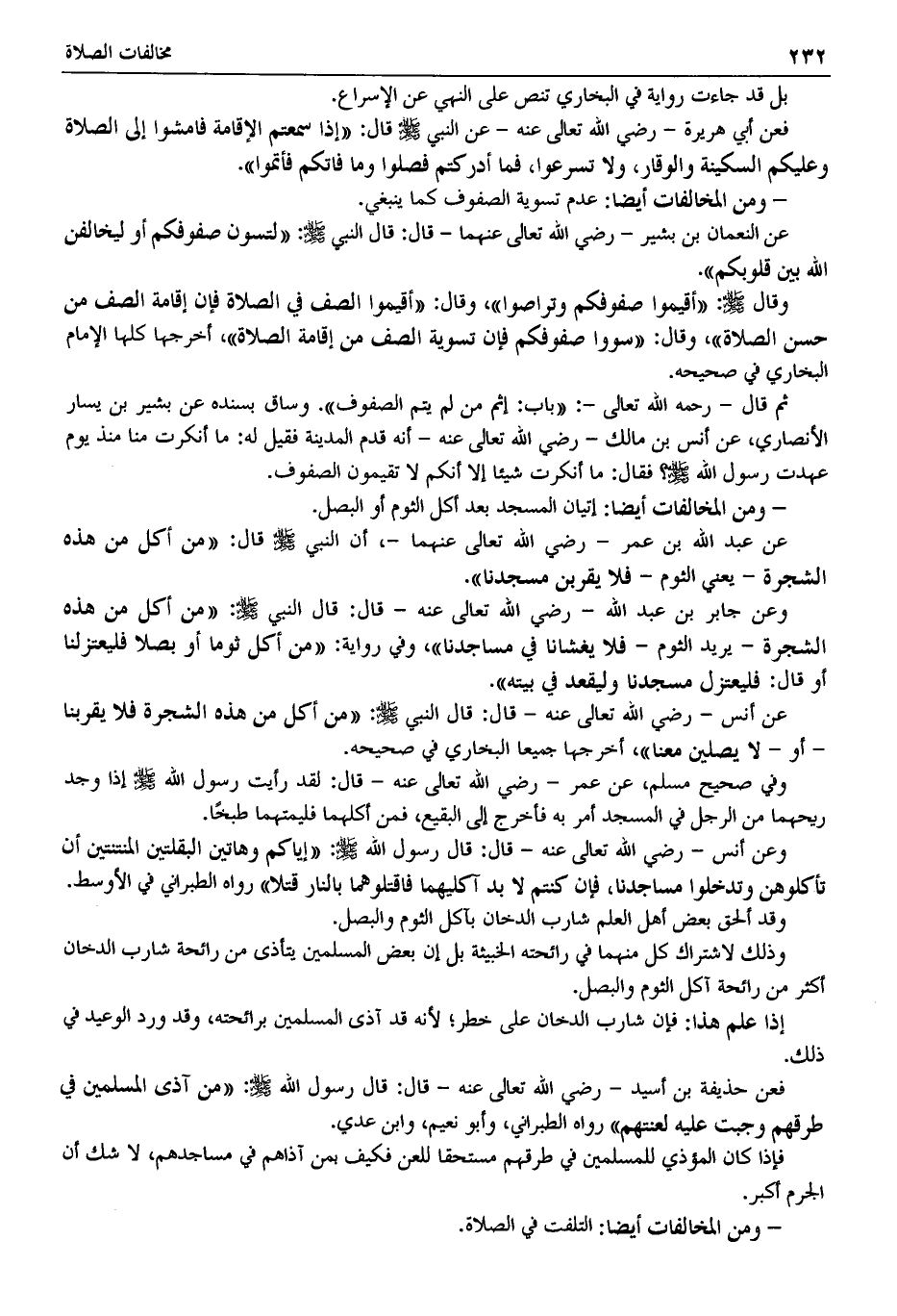 - ومن المخالفات أيضًا: عدم تسوية الصفوف كما ينبغي.
