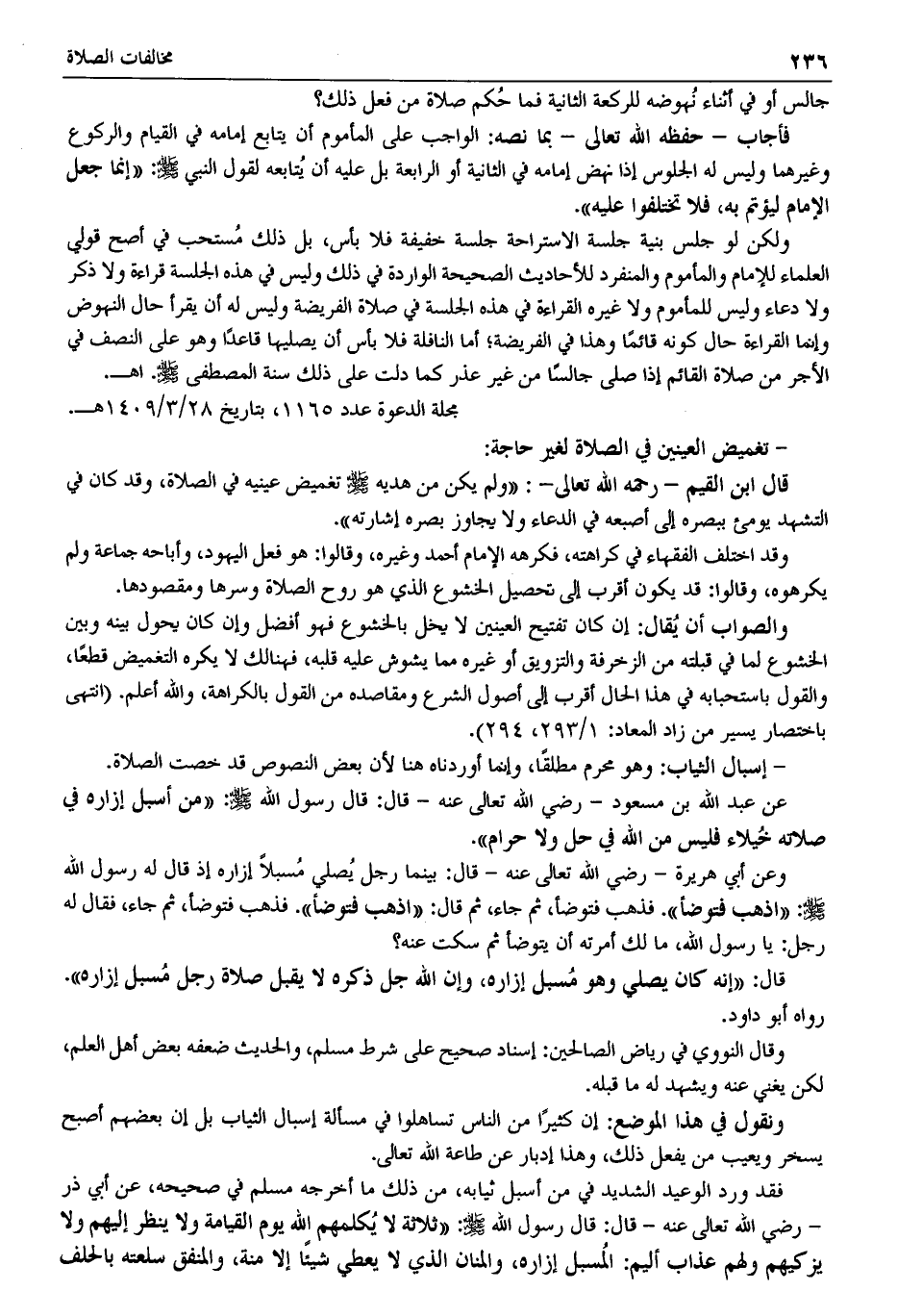 - إسبال الثياب: وهو محرم مطلقًا، وإنما أوردناه هنا لأن بعض النصوص قد خصت الصلاة.