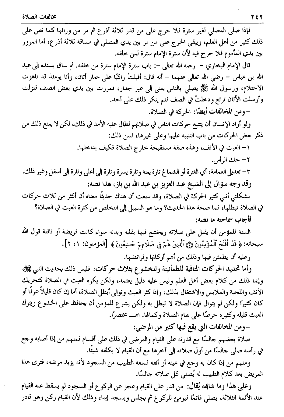 - ومن المخالفات أيضًا: الحركة في الصلاة.