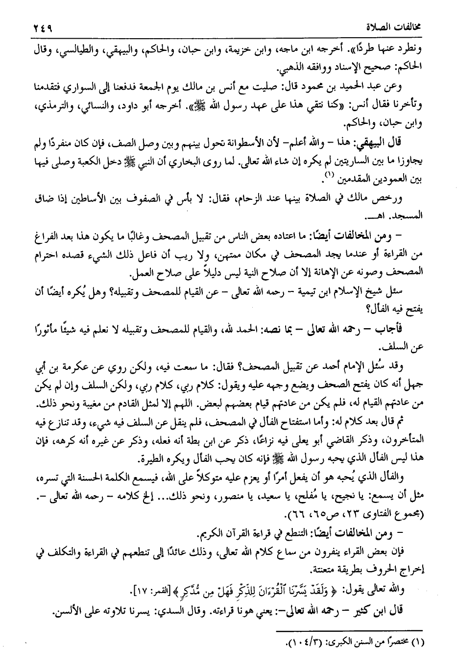 سئل شيخ الإسلام ابن تيمية -رحمه الله تعالى- عن القيام للمصحف وتقبيله؟ وهل يُكره أيضًا أن يفتح فيه الفأل؟