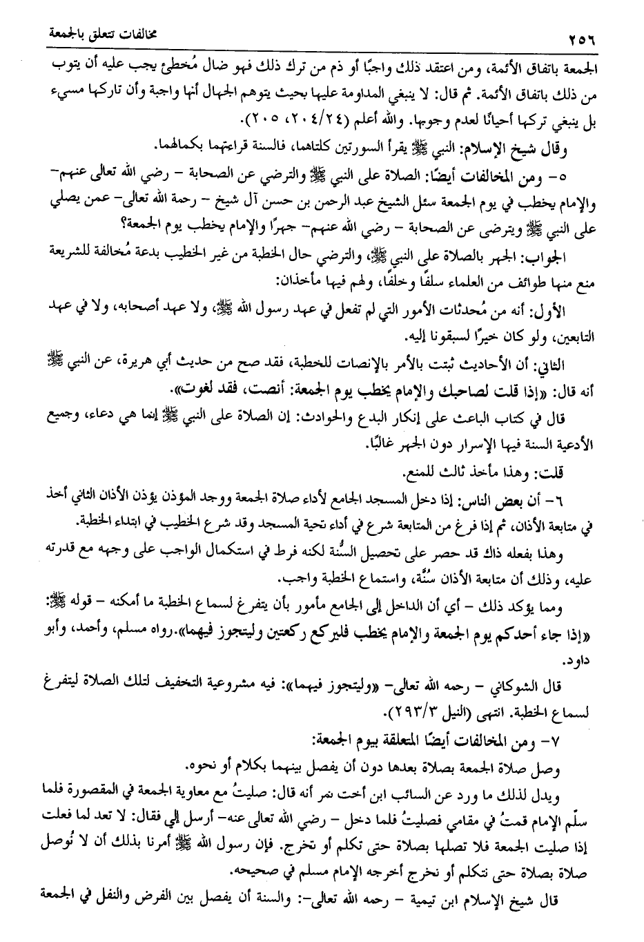 5 - ومن المخالفات أيضًا: الصلاة على النبي -صَلَّى اللَّهُ عَلَيْهِ وَسَلَّمَ- والترضي عن الصحابة -رضي الله تعالى عنهم- والإمام يخطب في يوم الجمعة سئل الشيخ عبد الرحمن بن حسن آل شيخ -رحمة الله تعالى- عمن يصلي على النبي -صَلَّى اللَّهُ عَلَيْهِ وَسَلَّمَ- ويترضى عن الصحابة -رضي الله عنهم- جهرًا والإمام يخطب يوم الجمعة؟