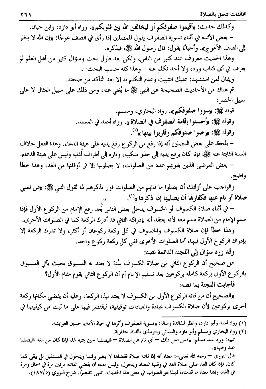(¬1) رواه أحمد وأبو داود، وانظر للفائدة رسالة: "تسوية الصفوف وأثرها في حياة الأمة" حسين العوايشة.