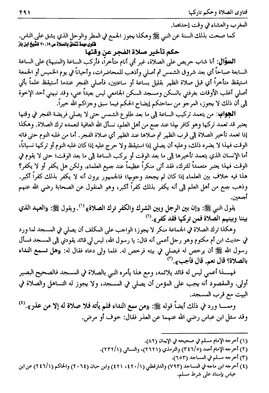فتاوى مهمة تتعلق بالصلاة ص 19، 20 للشيخ ابن باز