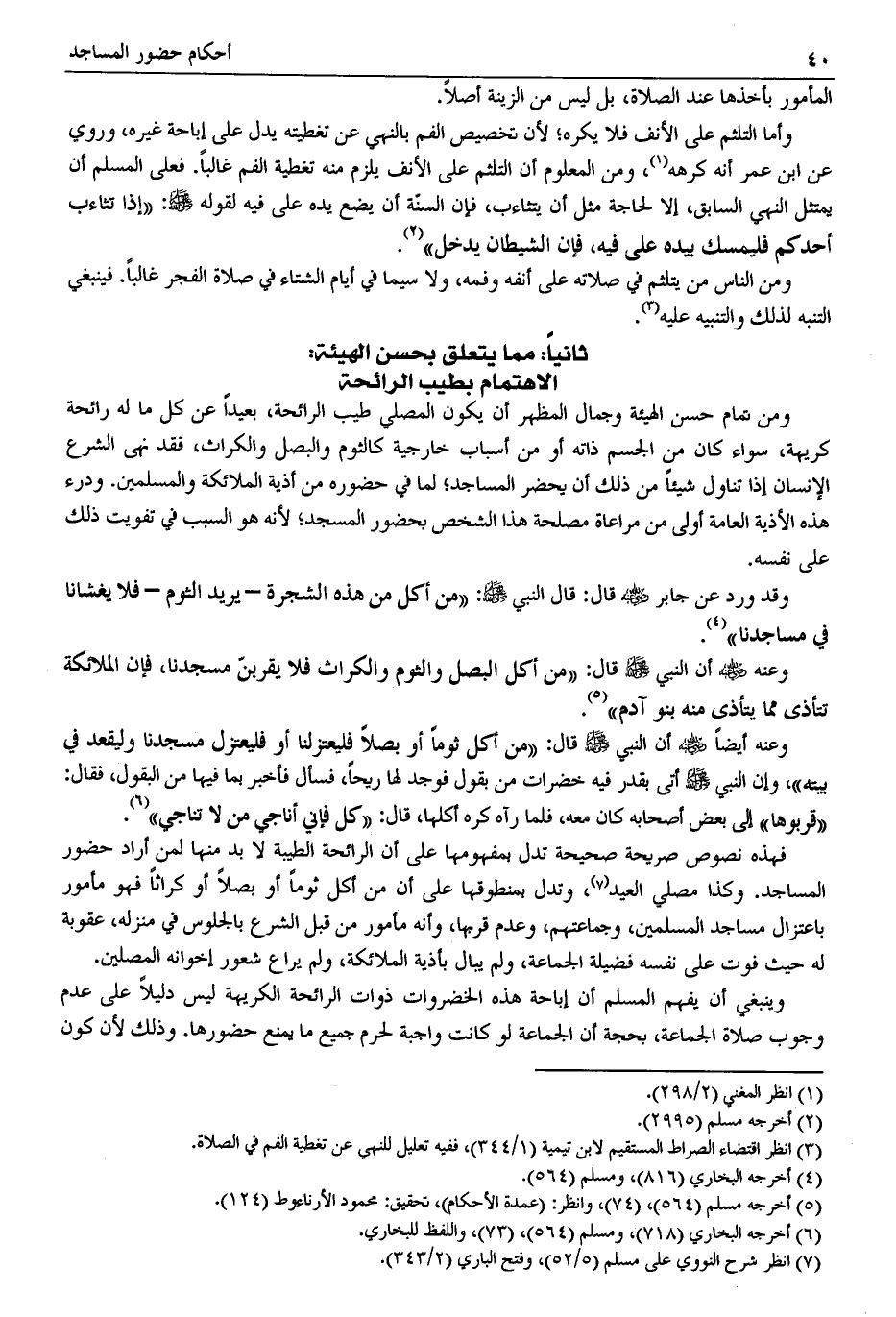 (¬3) انظر اقتضاء الصراط المستقيم لابن تيمية (1/ 344)، ففيه تعليل للنهي عن تغطية الفم في الصلاة.