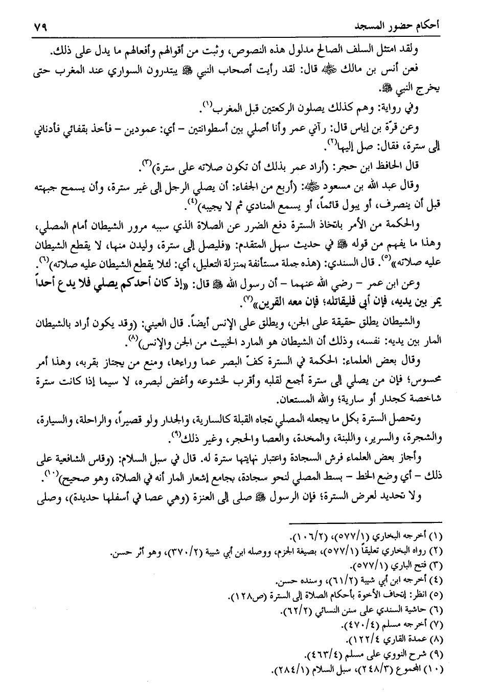 (¬5) انظر: إتحاف الأخوة بأحكام الصلاة إلى السترة (ص 128).